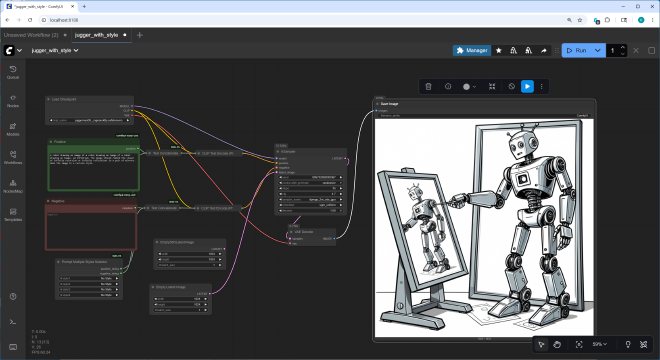 Install some software that implements the Stable Diffusion engine that will execute the AI models and produce the images. This software will present a UI to the user to control the image generation. The most popular choices for this software are Automatic1111 and ComfyUI. I tried both, but I found that I liked ComfyUI better personally. Because I didn’t want to install this software natively on my system, I found and downloaded Docker images that contained either Automatic1111 or ComfyUI.